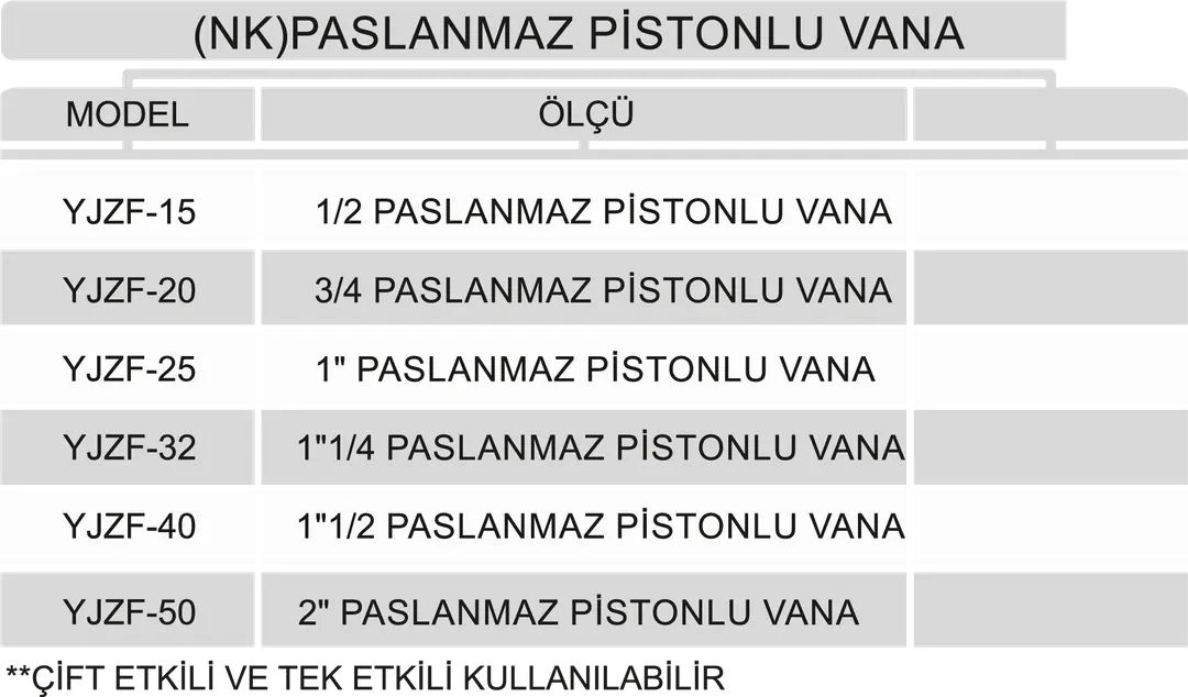 PASLANMAZ PİSTONLU VANA