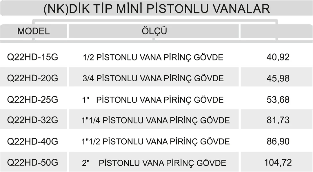 (NK) PİSTONLU VANA PİRİNÇ GÖVDE