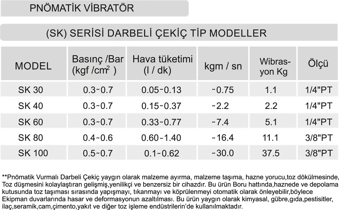 SK SERİSİ DARBELİ ÇEKİÇ TİP VİBRATÖR